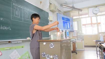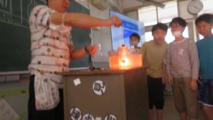 物が燃えるには、空気のどの気体が関係するのかを実験で確かめました。