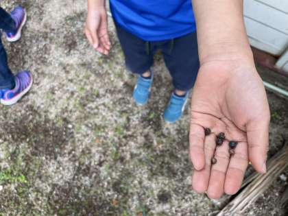 初めて学習園に行きました。虫を見つけるのに夢中になっていました。
