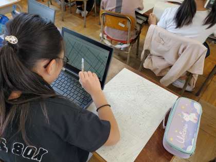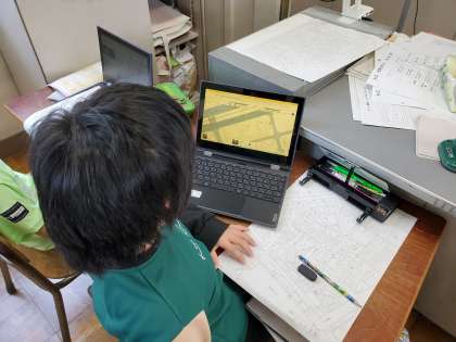 グーグルマップや地図を使って、自分たちが住んでいる町について調べました。