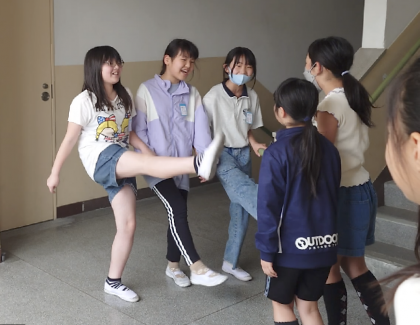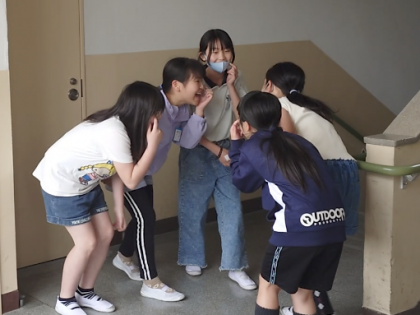 花いちもんめをして遊んでいました。楽しそうな声が廊下に響き渡っていました。