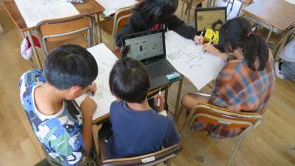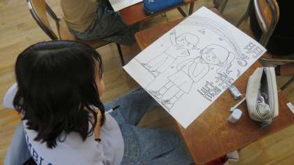 明るい社会をめざし、みんなでポスターを作成しています。
