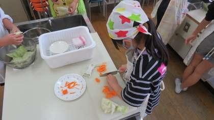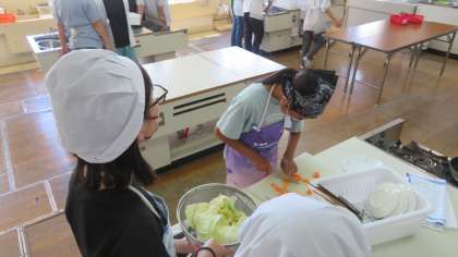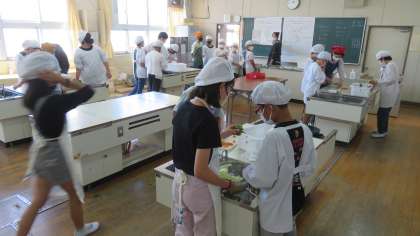 調理実習を行いました。今回は「野菜炒め」を班で協力して作りました。具材の切り方や、味付け・盛り付けをそれぞれの班が工夫をしている様子がうかがえました。