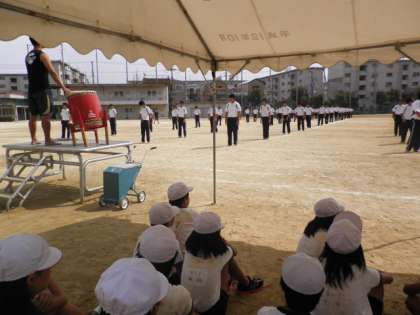 10月3日(木)港中学校の体育大会の予行演習を6年生が見学に行きました。