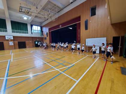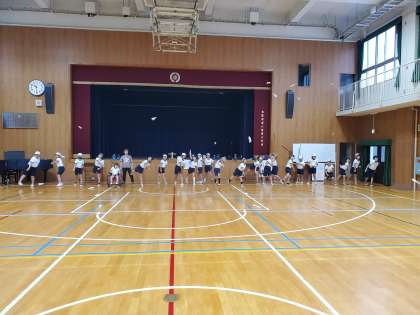 5/30にある新体力テストに向けて、練習をしました。今日は大雨で外に出られないので、ソフトボール投げの代わり紙飛行機大会をして、紙飛行機を飛ばしました。