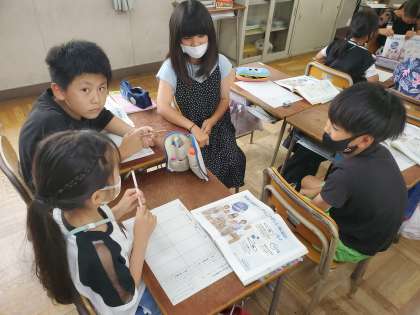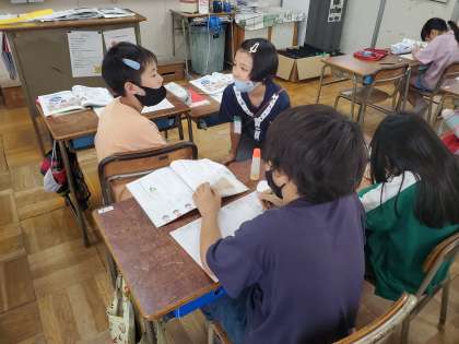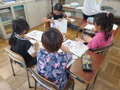 2つの広告を読み比べて、写真の違いやレイアウトの違いについて話し合いました。