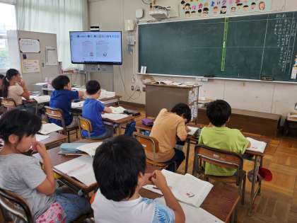 2つの給食だよりを読み比べて、「始め」「中」「終わり」から何を伝えたいのか読み取りました。