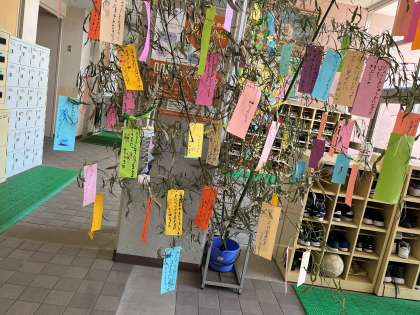 みんな自分の願いをそれぞれ短冊に書いて笹に飾りました。