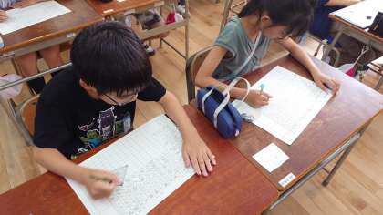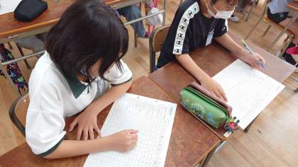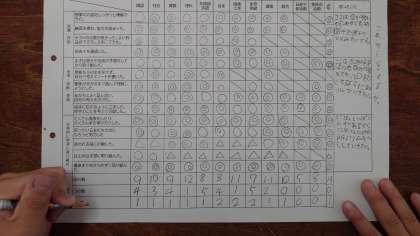 1学期の学習の様子を振り返りました。自分から動くことができたか、よく考えて行動したか、しっかり理解したかマルをつけて、できなかったことは2学期の目標にしました。