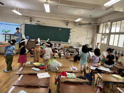 1年生の国語科で「おおきなかぶ」の音読発表会をしました。