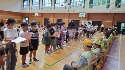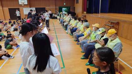 見守り隊の方に来ていただいて、ありがとう集会を開きました。見守り隊の方から一言ずつお礼の言葉をいただいて、ふだんどれだけ子どもたちのことを大切に思ってくださっているかが分かりました。なにより、代表委員会さんが司会進行運営をしっかり行ってくれたので、とてもすてきな会になりました。