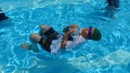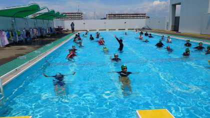 着衣したまま水に入り、体が服で重たくなる経験をしました。ペットボトルをかかえて力を抜くと体がしっかり浮くことも分かりました。おぼれた時にどうすれば自分の命を守ることができるのか考えるよい機会となりました。