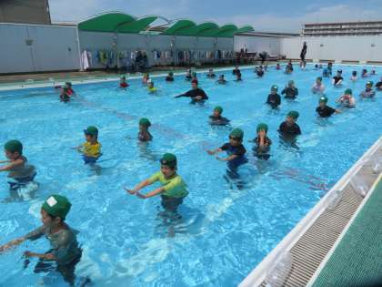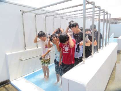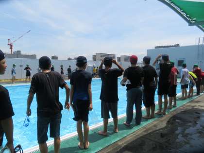 プール・水泳学習の最終日、5・6年生で着衣泳の学習をしました。普段の水泳学習ではなく、自分の命を守るために、どう行動すればよいかをみんなで考えながら取り組みました。