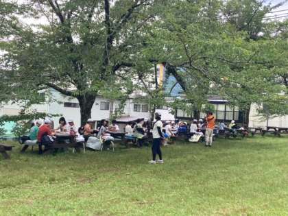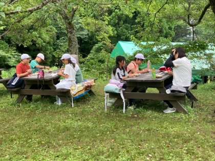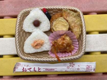 お昼ご飯はお弁当です。木陰のベンチに座っておいしくいただきました。