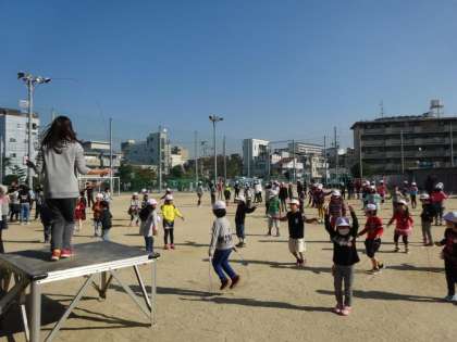 3・4時間目の間の10分休みに全校でなわとびをします。今日は前とび、明日は後ろとびというようにメニューを決めてしています。休み時間も練習している児童もいます。