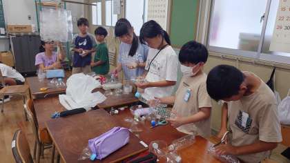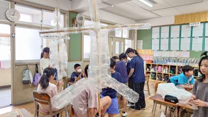 住吉大社さんにお米の苗をいただいたので、お礼にかかしを作っています。重くならないように中身にペットボトルを詰めます。出来上がりが楽しみです。