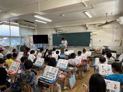 1年生の音楽科で初めて鍵盤ハーモニカを使って学習しました。吹き方や鍵盤の押さえ方などを知って、これから使っていくのを楽しみにしていました。