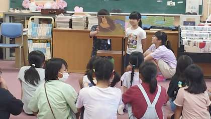 昼休みに紙芝居のよみきかせをしました。たくさんのお客さんが来てくれたので、読み手もはりきっていました。