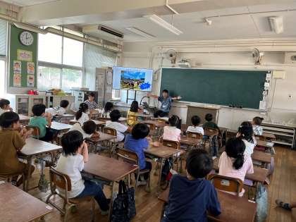 赤組…、白組…。かけっこに玉入れ、ダンス…。1年生は、八幡屋小学校で行う初めての運動会について、先生からお話を聞きました。