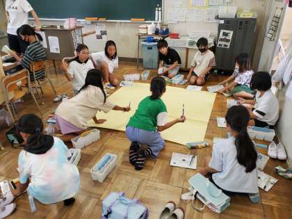 100周年記念式典にむけて、階段アートやくす玉の中身をつくりました。