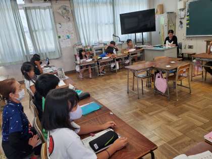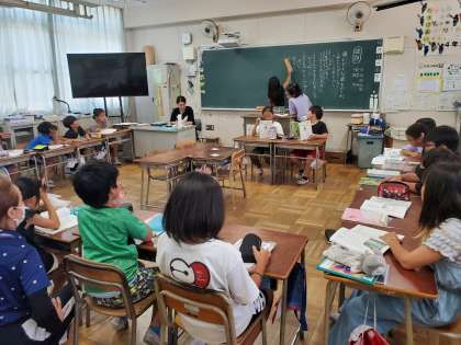 学級旗に描く絵について話し合いました。「司会者」「参加者」を決めてクラスで話し合いました。