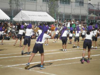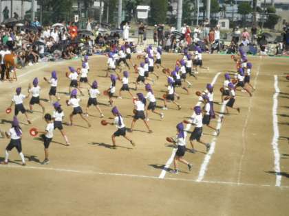 リズミカルなパーランクーの音とともに、運動場いっぱい力強い「エイサー」を披露しました。