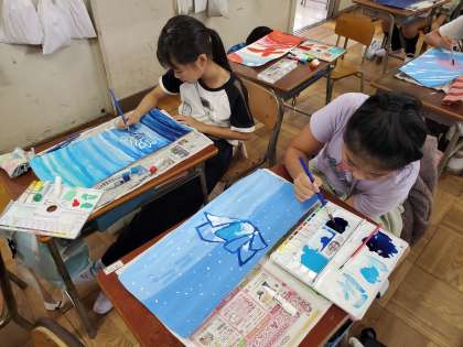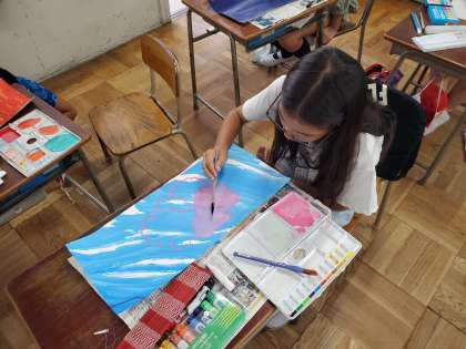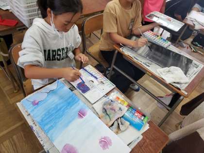「まぼろしの花」をかきました。自分で想像して誰も見たことのない花をかいています。