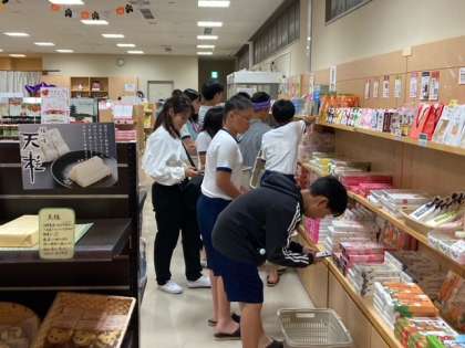 夕食後はお買い物の時間です。限られたお小遣いで、家族へのおみやげ、自分のおみやげを電卓で計算しながら買っていました。
