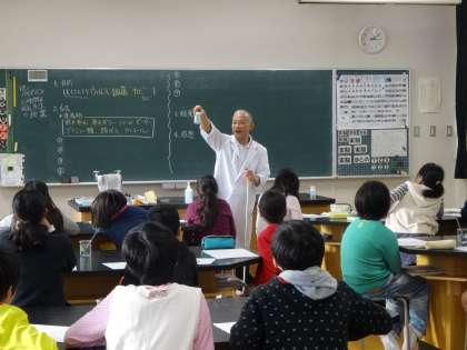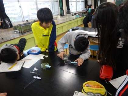校長先生が、「寒天培地の作成と微生物実験」の授業をしました。高価な機器を使わず、市販されている寒天と飲用栄養ゼリーや手指消毒用のアルコールゲルを用いることで、手軽かつ簡単に、細菌を培養することができます。「実験を通じて、自然科学への興味と関心を高めるとともに、最先端の実験現場で用いられている手法の一部分も体験させたい」という願いで授業は行われ、数日後には、検体を植え付けた面に細菌が繁殖する様子を観察することができます。5年児童は興味を持って実験に取り組んでいました。