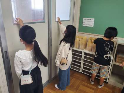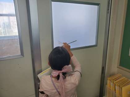 教室にある垂直や平行なものを探しました。