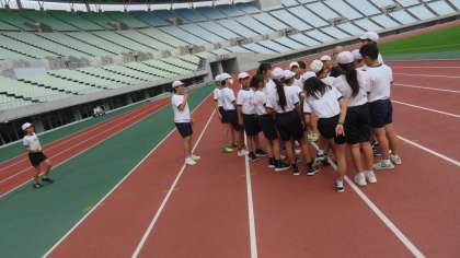 11月15日(金)長居ヤンマースタジアムでスポーツ交歓会が行われました。他校と合同で100メートル走や400メートルリレー、400メートル・800メートル走のタイムを計りました。みんな一生懸命走っていました。大きな競技場で体を動かすことができ、子どもたちはとてもうれしそうでした。