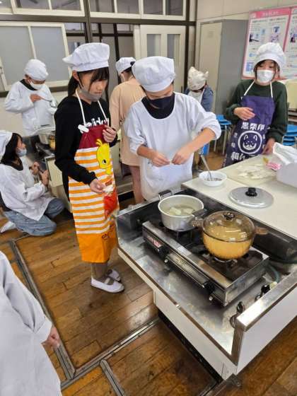2回目の調理実習をしました。味噌汁とご飯を作りました。自分たちで育てたご飯と、煮干しで出汁をとった味噌汁、みんな協力して両方ともとてもおいしくでました。
