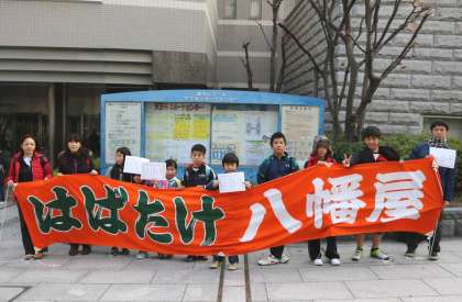 下段:記念写真。天王寺SC玄関で、応援の方と。