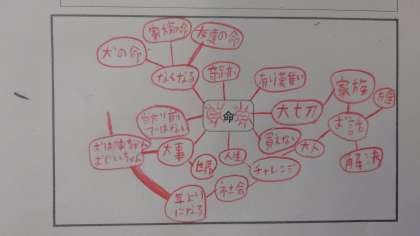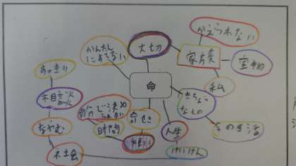 読解力向上を高める学習をしました。教材は、命について考えるもので、奇跡によって生まれた命を大切にしようという内容でした。友だちと意見交換をしたりイメージマップをかいたりして、自分の考えをまとめました。