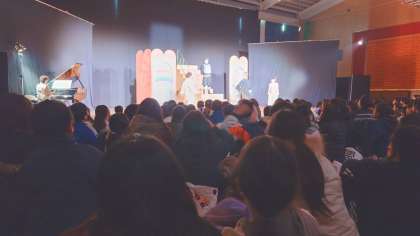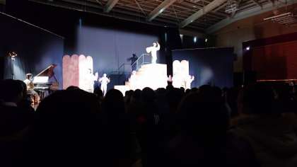 今日は芸術鑑賞会で池島小学校へ行きました。こんにゃく座の皆さんのオペラ鑑賞をしました。