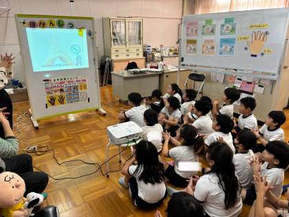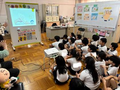 発育測定の前に手の洗い方について学びました。発育測定が終わった後に実際に手洗いをしました。みんな上手に洗うことができました。