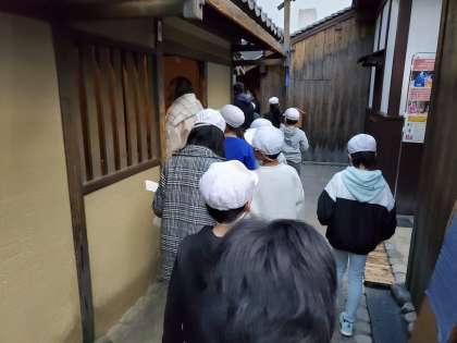 社会見学でくらしの今昔館に行きました。昔の大阪の町並みを歩いて、いろいろな展示物を見学しました。