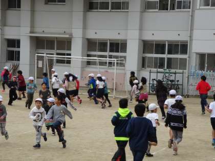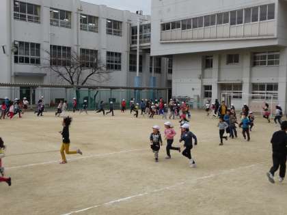 今日から「かけあしタイム」が始まりました。10分休みの短い時間ですが、一生懸命走って、顔を真っ赤にしている児童もたくさんいました。毎日継続して走ることで、だんだん体が慣れてきて、タイムも早くなってきます。今日は、体育の時間にも2年生が走っていました。1月の終わりには、何周走れるようになっているでしょうか?楽しみですね。