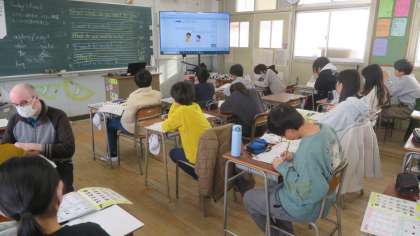 今日は、中学校でどんな部活動に入りたいか、将来どのような職業をしてみたいのかを考え、英語を使って表現しました。「〇〇 team」 と{〇〇 club」の違いなどをCーNETの先生に教えていただきました。