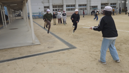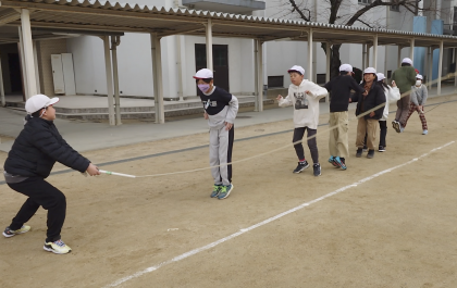 少し暖かい日が続いたので外で長縄をしました。みんな全然跳べなくて、みんなで笑っていました。