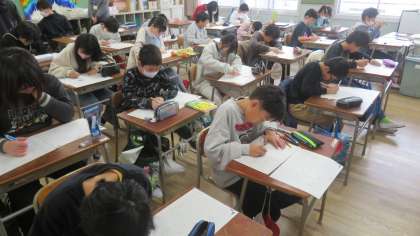 来週本校で実施される、漢字能力検定試験の練習に各学年取り組んでいます。今日は6年生が本番を想定して問題を解きました。時間配分を気にしながら、自分の得意・不得意な分野はどこなのかを考えて取り組みました。