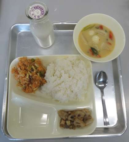 さけちらし、ぞう煮、れんこんのごまじょうゆ焼き のメニューです。