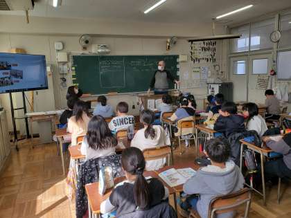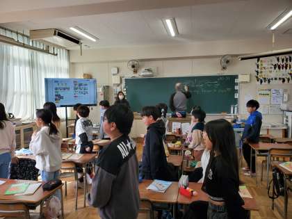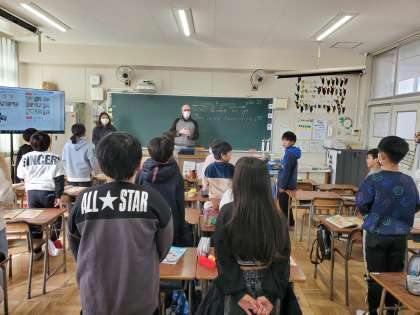 まっすぐ、右に曲がる、左に曲がるを英語で言うゲームをしました。