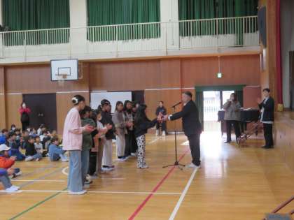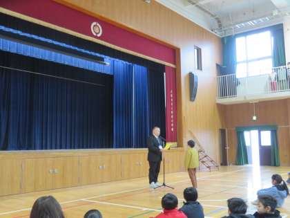 児童朝会 編入生紹介