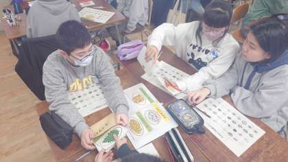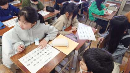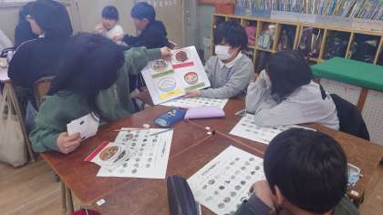 池島小学校の栄養教諭前田先生に来ていただき、バイキング給食のメニューを考えました。栄養のバランス、色合いなどみんなで相談して決めました。