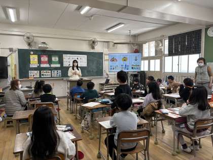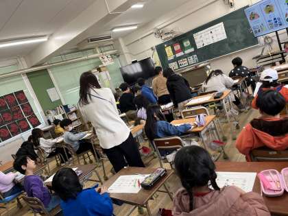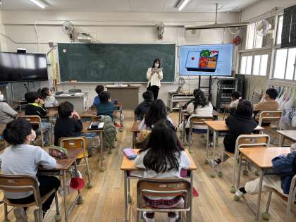 池島小学校の前田先生に来ていただき、たべものの栄養について考えました。いろんなたべものを「エネルギーのもとになる」「体をつくるもとになる」「体のちょうしをととのえる」の3つのグループに分けました。