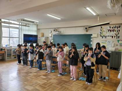 参観で「10歳のぼくたち・私たち」の発表をしました。将来の夢を発表したり、リコーダーを演奏したりしました。