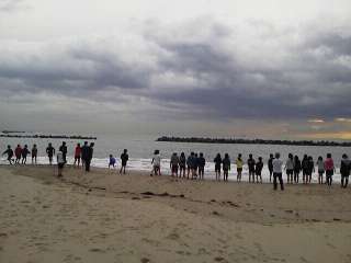 10月18日(金)修学旅行2日目です。6時起床、眠い目をこすりながら、強い海風の中でラジオ体操、散歩です。全員元気な朝を迎えています。