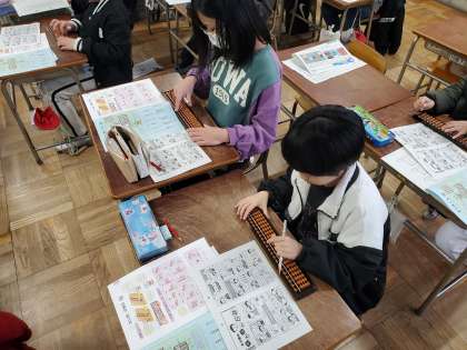 そろばんの講師の方が来て、そろばんのやり方を教えてくださいました。
