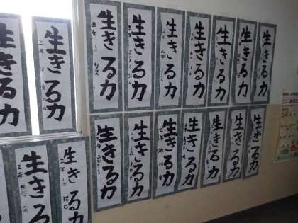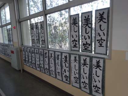 1月の書写の授業で書いた書初めが西館2階廊下に貼り出されています。けっこう上手に書いています。機会があれば見ていただければと思います。