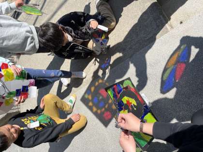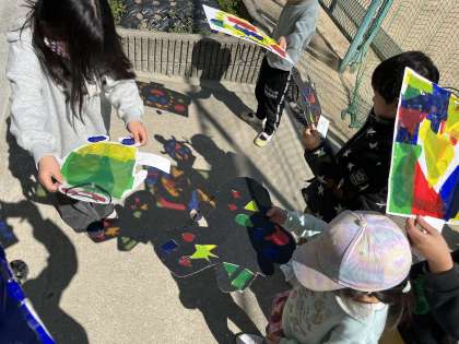 自分たちで作った作品のものを実際太陽のひかりにあてて完成の様子を見ました。